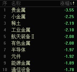 京沪深三市近4900只个股飘绿,贵金属、稀土、航天设备、有色金属、半导体等板块跌幅靠前。石油石化板块上涨2.35%,领跑全市场。